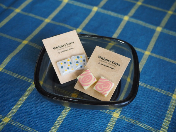 気まぐれな感性をメモリーするようにデザインしたハンドメイドのピアスと、コルクを使ったチャーミングなマスコットも販売します。