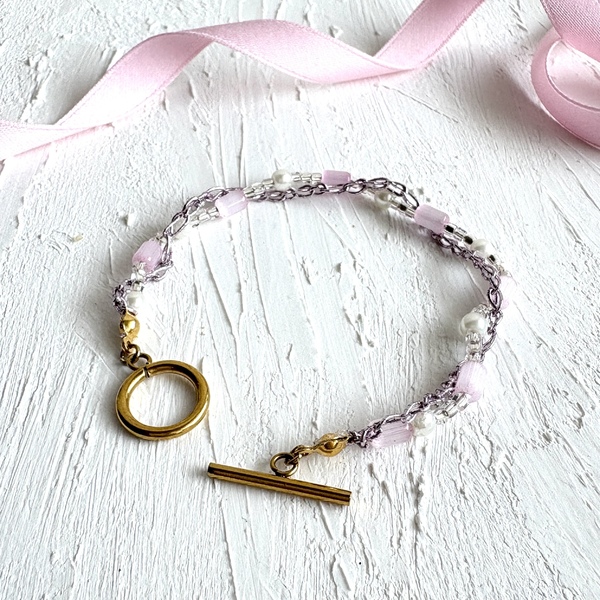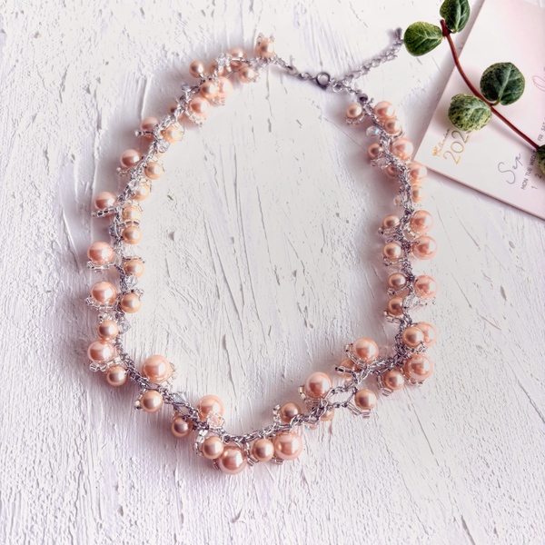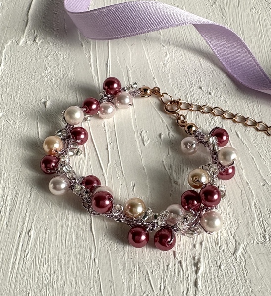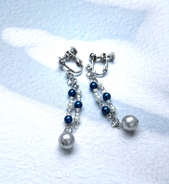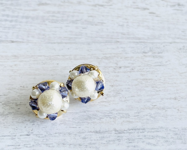 クリスタルビーズとパールのピアス - 華やかさを耳元に(グレープ)(グレープ))
