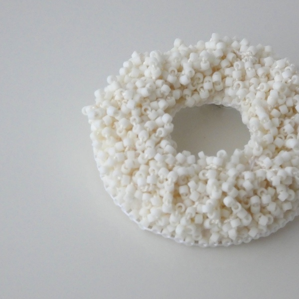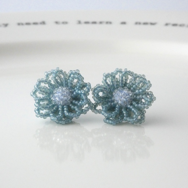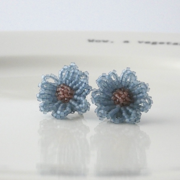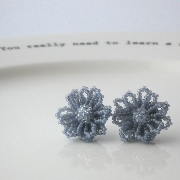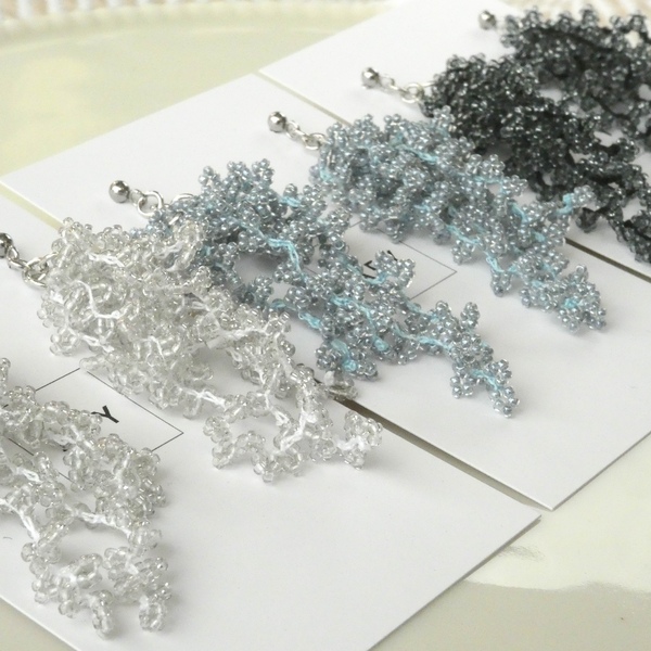 ひと粒ひと粒ビーズを縫い付けて制作した、ビーズ刺繍のアクセサリーです。
