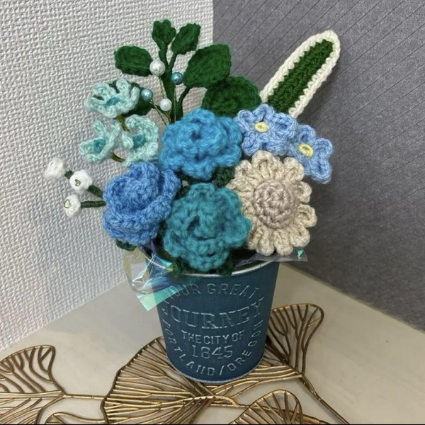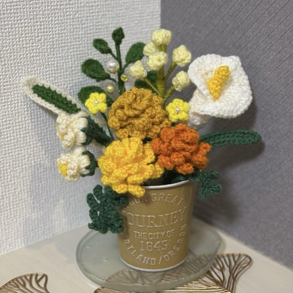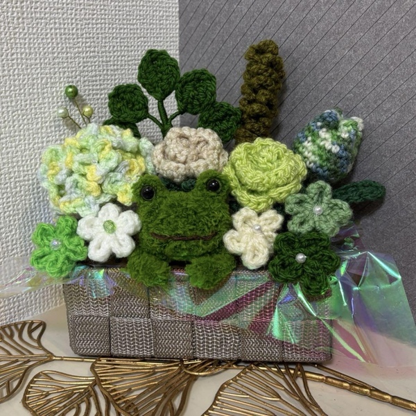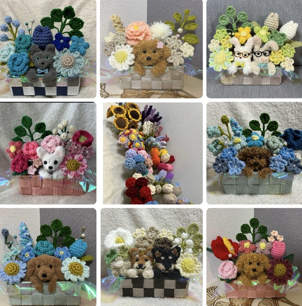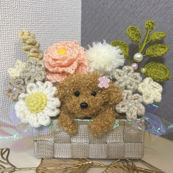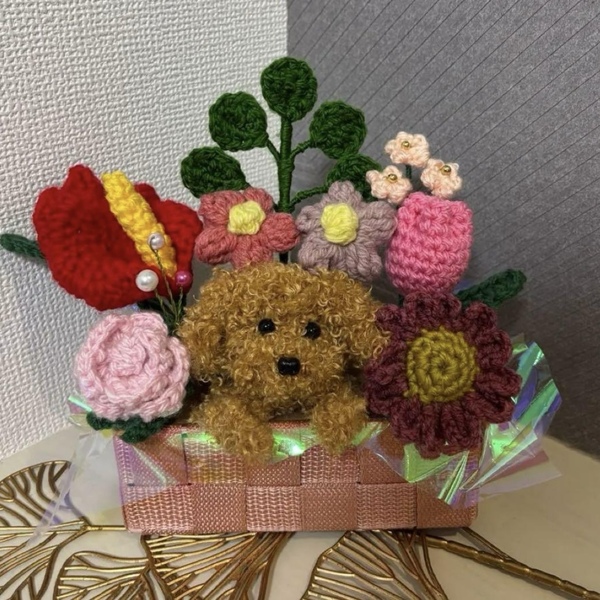 アニマルバスケット 枯れない花 ニットフラワー