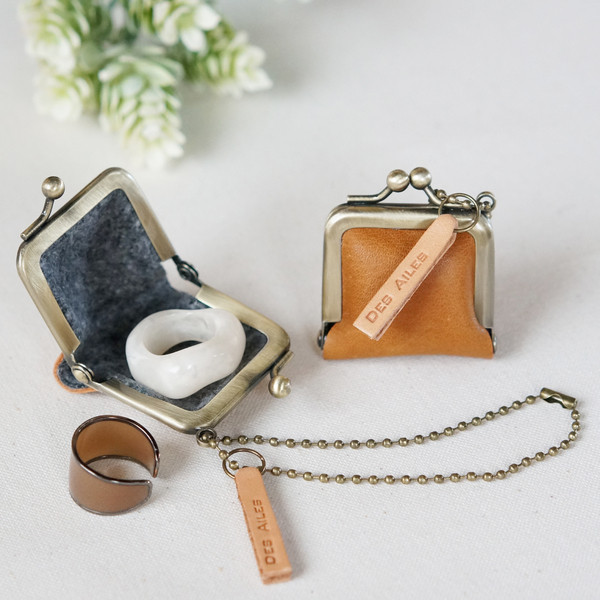 持ち歩ける本革リングケース(がま口指輪ケース)
