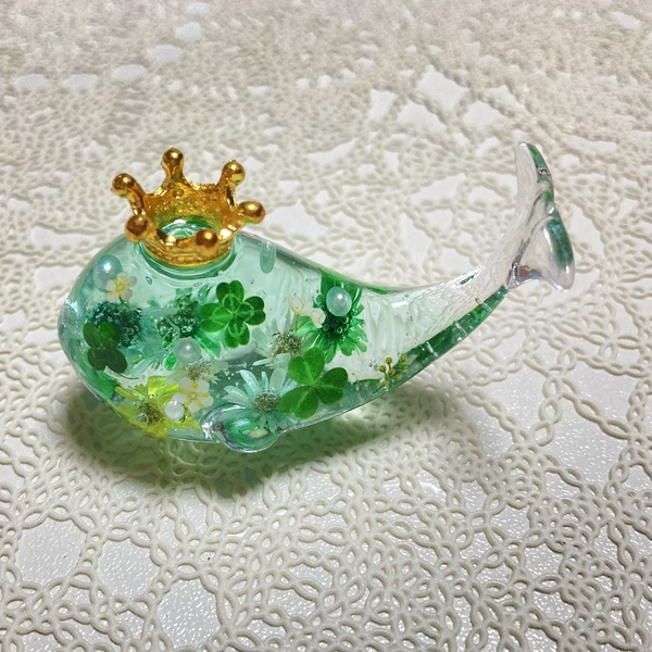 ハーバリウムくじら(四葉のクローバー)