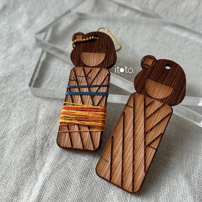 ゆびぬきこけしちゃん - 糸巻きキーホルダー